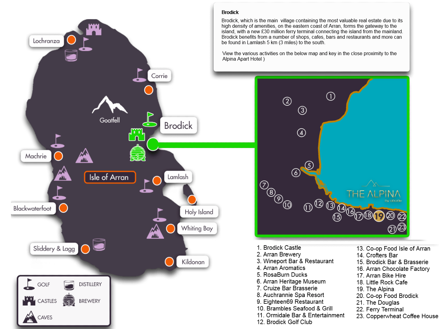 - plenty of opportunities to get good food (Joshua`s Bistro in Whiting Bay, Ormidale Hotel)